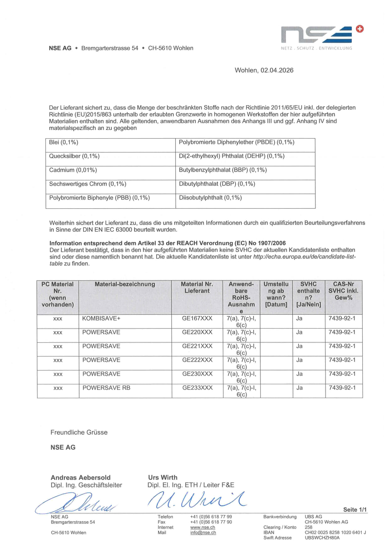 Ich kann jederzeit Auskunft über meine gespeicherten Daten verlangen sowie Berichtigung, Einschränkung der Verarbeitung oder Löschung beantragen. Anfragen hierzu können an datenschutz@nse.ch oder schriftlich an die NSE AG, Bremgarterstrasse 54, 5610 Wohlen, gerichtet werden.